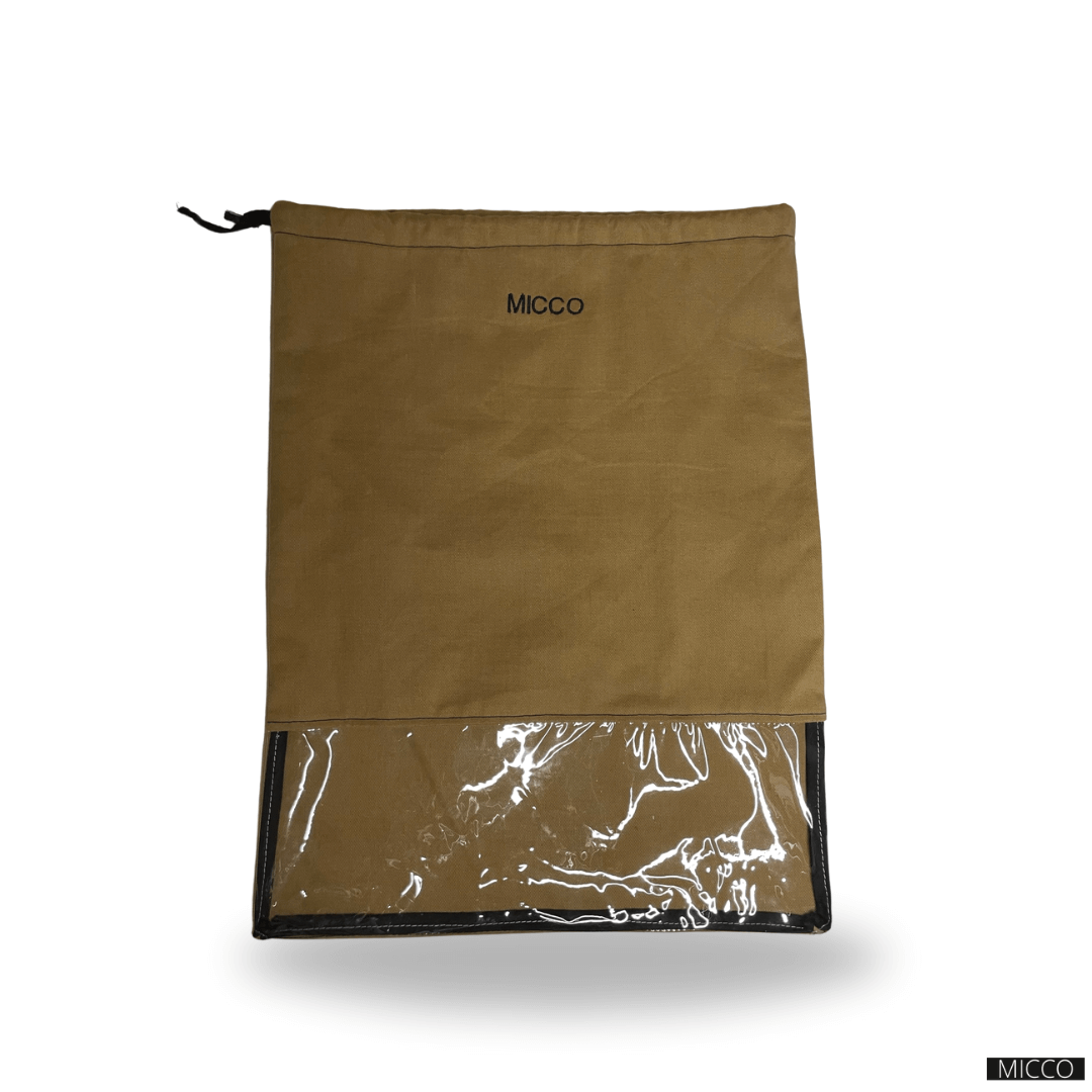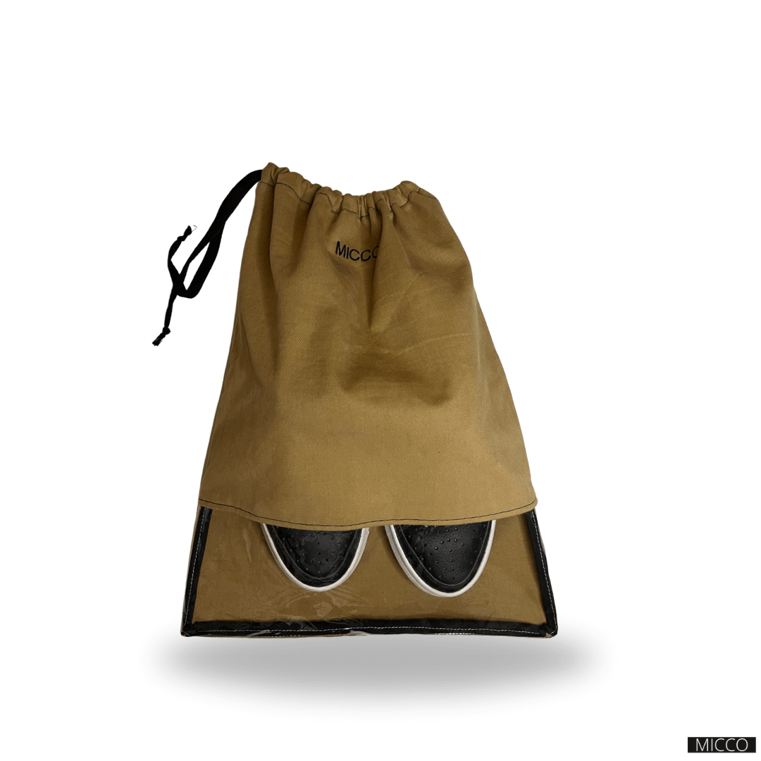 Bolsa de tela y una parte transparente para guardar los zapatos e identificarlos dentro de la bolsa.