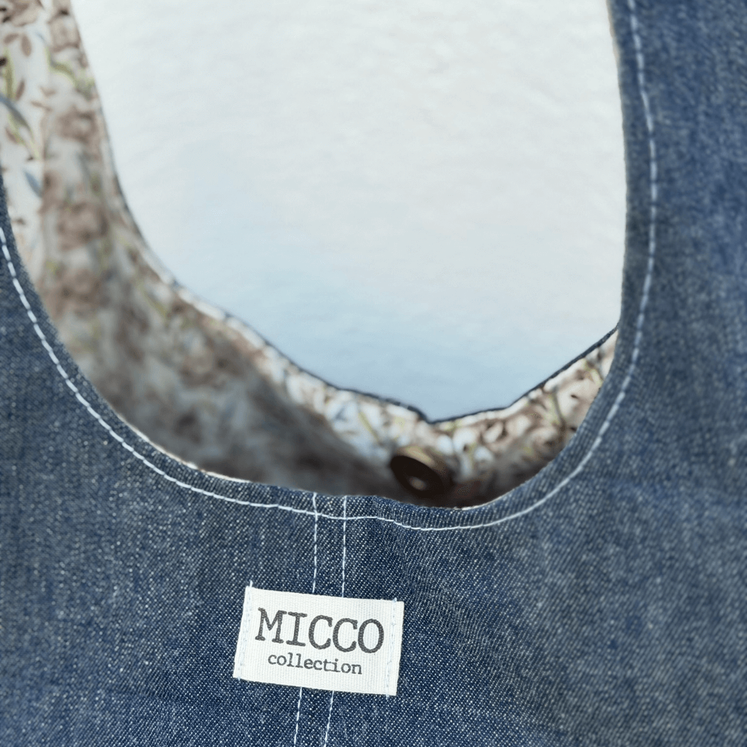 Bolso estilo hobo de tela vaquera, con interior estampado y asa amplia para mayor comodidad.